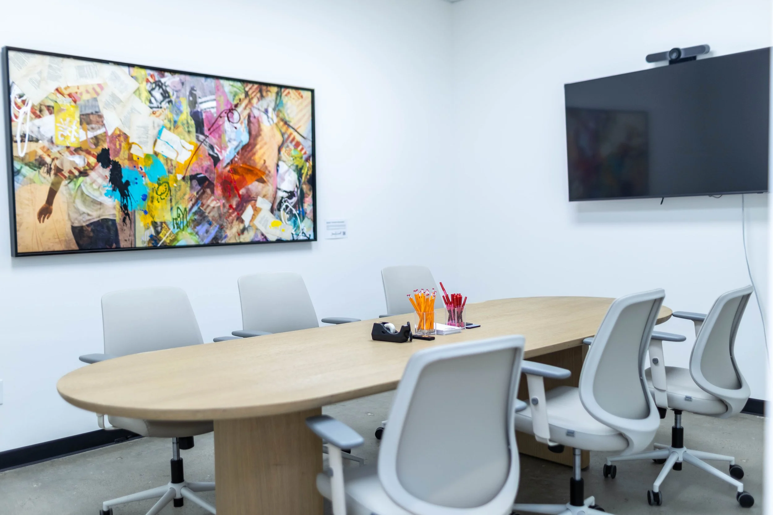 Need a quiet spot to get things done - or a small space for some 1:1 time? Our two-person private office is fully set up with 2 desks, 2 chairs, and a monitor - perfect for solo deep work, pair work, or taking calls all day. Rent it by the hour or for the full day and make it your own little meeting spot or focus zone.