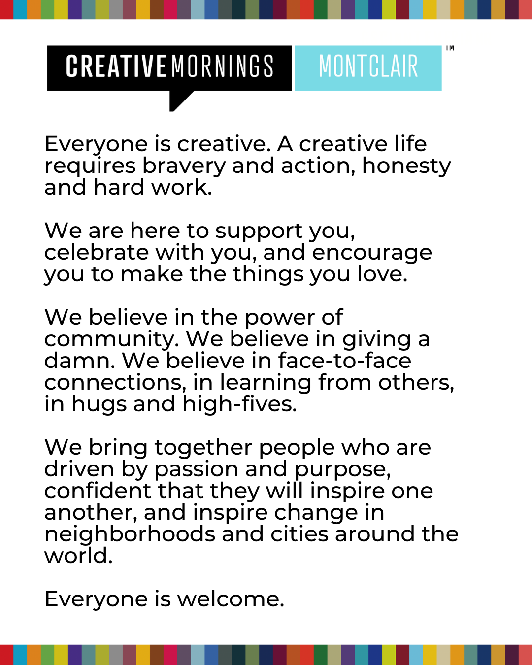 ✉️ Interested in sponsoring, speaking, or volunteering? Email us at montclair@creativemornings.com